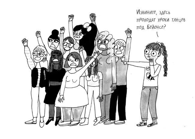 Больше женщин во главе государств; больше женщин и не только белых женщин ученых, инженеров, ведущих ночных ток-шоу, шоураннеров. Мы хотим увидеть дождь из Табмен (новое лицо 20-долларовой купюры), а также женщину на стодолларовой купюре и пятидесятидолларовой, и десяти, и пяти. Мы хотим искоренить сексизм из языка, и мы хотим, чтобы нам перестали повторять «улыбнись!». Мы стремимся к равной заработной плате, субсидируемому правительством оплачиваемому отпуску по уходу за ребенком и, ради бога, к избранию чертовой женщины-президента при нашей жизни. Наш подход состоит из трех частей: борьба за себя, борьба за сестер, борьба с системой.