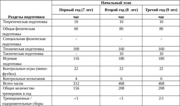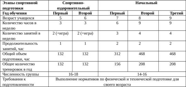 Таблица 8. Тренировочные сборы на этапе начальной подготовки