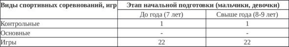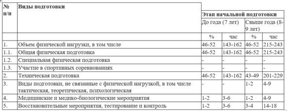 Таблица 9. Соотношение видов подготовки в структуре тренировочного процесса на этапе начальной подготовки
