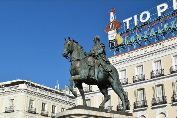 Три дня праздников три города, где мне довелось побывать в 2013 году, а теперь все увиденное ранее хотелось показать и Надежде. Начать решили с Мадрида, тем более что все основные достопримечательности испанской столицы, в отличие от Барселоны, сконцентрированы на сравнительно небольшом участке от Королевского дворца до станции метро «Puerta del Sol». Конечно, такое утверждение спорное, но, как ни крути, Мадрид все же на любителя. Обладая развитой транспортной инфраструктурой, город идеален для начала путешествия на юг или север страны и в Португалию, а вот с точки зрения топовых памятников он сильно уступает тому же Толедо, Сеговии и даже Авиле (Avila).