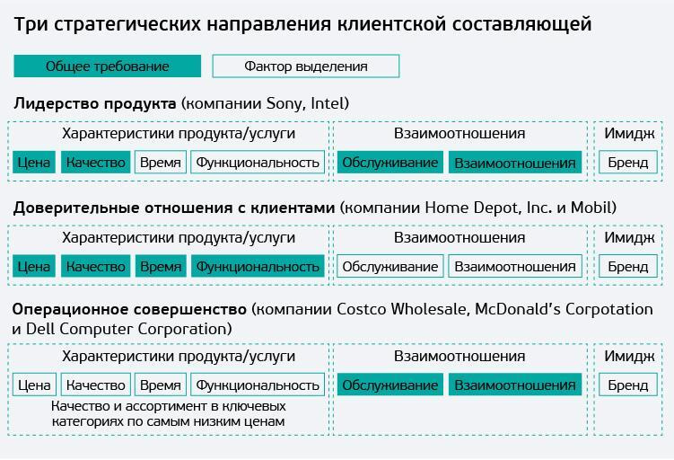 Успешной становится та компания, которая достигает совершенства в одном из направлений и одновременно стремится к высоким стандартам в двух других.