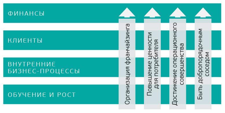 Стратегическая карта формируется сверху вниз: от финансовой составляющей к составляющей обучения и роста.