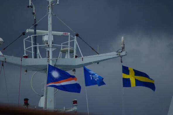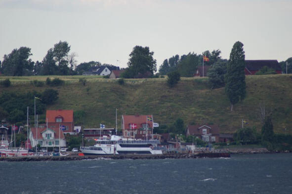 Проплываем мимо небольших островов Дании. Вот на пристани этого почему-то развевается еще и шведский флаг. Наверное, поделили землю по-дружески-соседски.