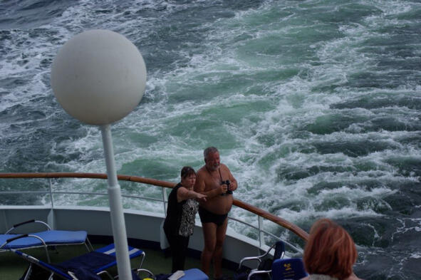 Солнце светит вовсю. Скидываю верхнюю одежду пора бы и позагорать. Через пару часов кожа чуть заметно краснеет, я знаю, что в море загар прилипает значительно быстрее, и если утратить бдительность, то незаметно можно поджариться ака окунь на сковородке. Поэтому ныряю в чрево лайнера. Ну что там с интернет связью?