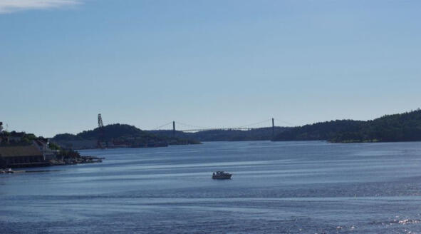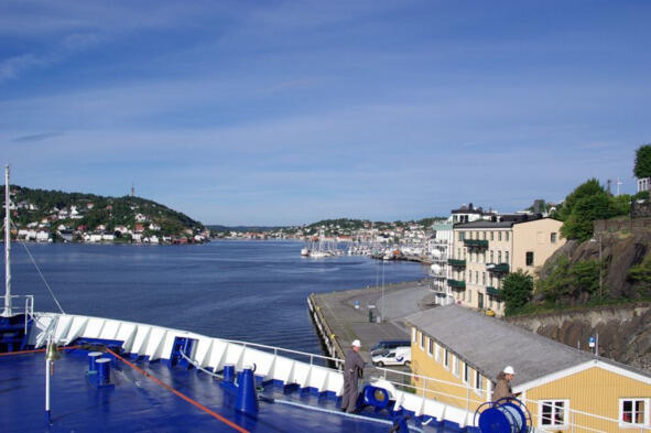 Мы подплываем к первому пункту назначения норвежскому Арендалу. Включил телевизор, второй канал. О-ппа! Земля-то уже совсем рядом. Бегом в душ, и, подхватив фото видеоаппаратуру сразу на палубу. Завтрак подождет!