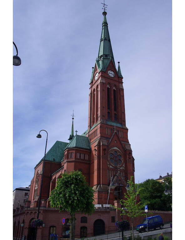 Это Троицкая церковь в Арендале. По-норвежски Trefoldighetskirken. В Википедии читаем ее историю: