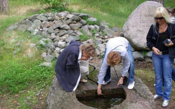 Она права в некотором роде. Но торопиться в лучший мир вряд ли желает. Рядом с церковью Ферье, в низине находится легендарный источник молодости и здоровья. Маленький такой ручеек, весело бегущий по гранитному желобу вниз. Называется Олавскилден. Актриса наклоняется и ладошкой черпает здоровье