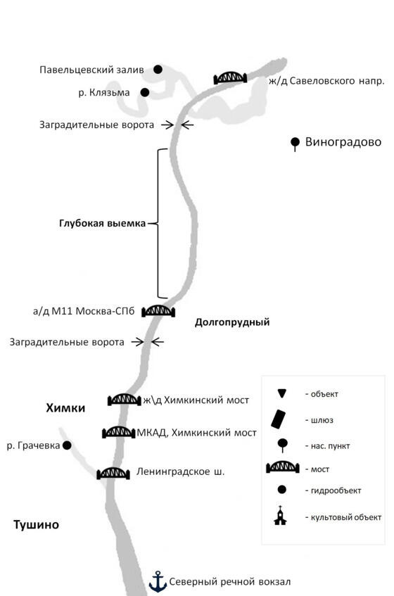 Сложно представить, что до стройки, до прокладки канала места здесь были тихие, журчала речка Химка, по деревянным мосточкам неспешно ходили местные жители. Сейчас речка стала частью канала, а скорости передвижения по мосту почти не изменились. Только теперь причиной тому стали пробки. Повздыхав об этом, пройдя под вторым мостом, автодорожным Химкинским (МКАД), мы оставляем Москву. Дальше наш путь пойдет по Подмосковью.