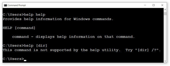 Команда help выводит на экран описание указанной команды. Например, чтобы изучить команду dir, нужно ввести команду: