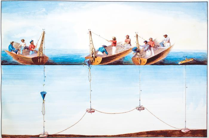 В 1860-х годах Иммануил написал несколько акварелей, изображающих производство мин. На картине показано их размещение