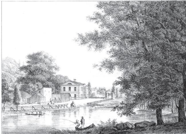 Рослагстулль с новым зданием таможни. Гравюра 1830-х годов Дж. Ф. Юлина