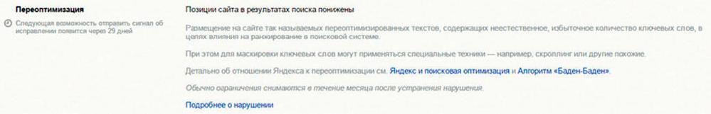 Вот так выглядит сообщение в панели веб-мастера при наложении фильтра: