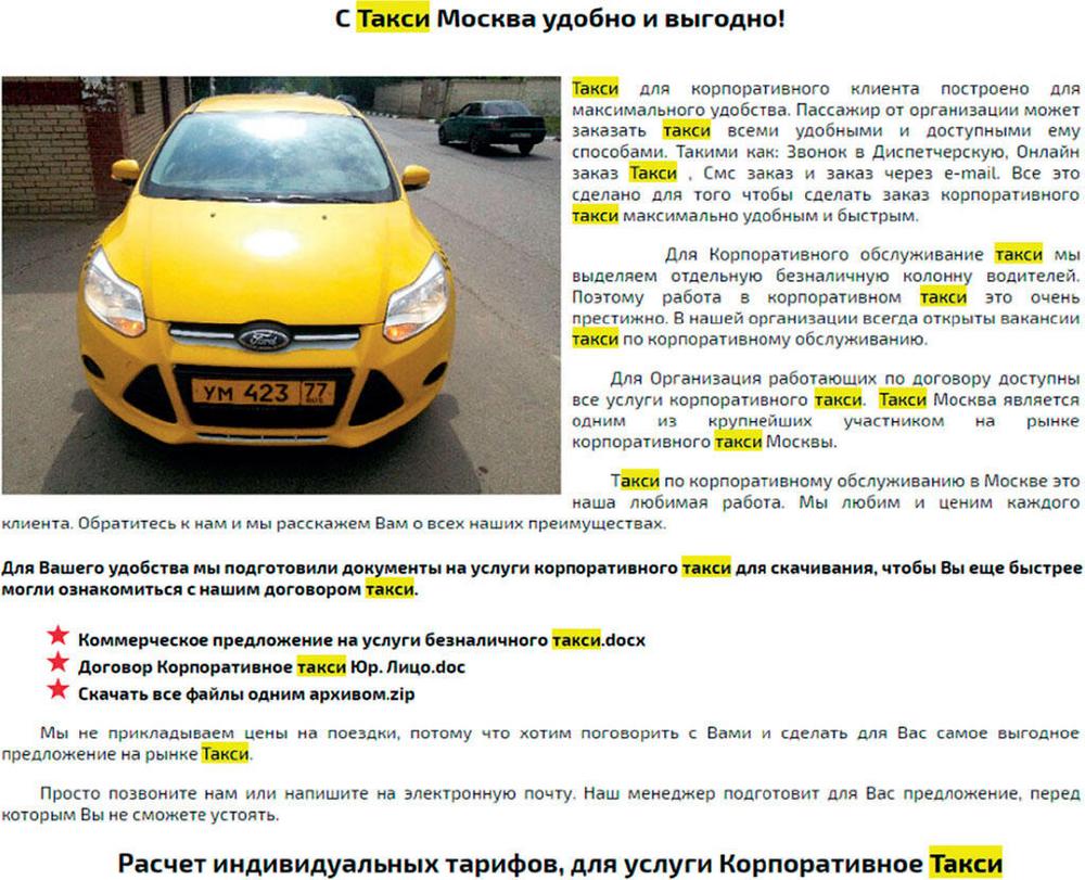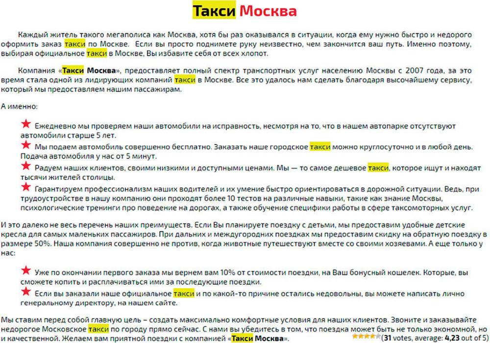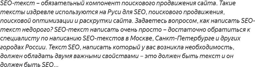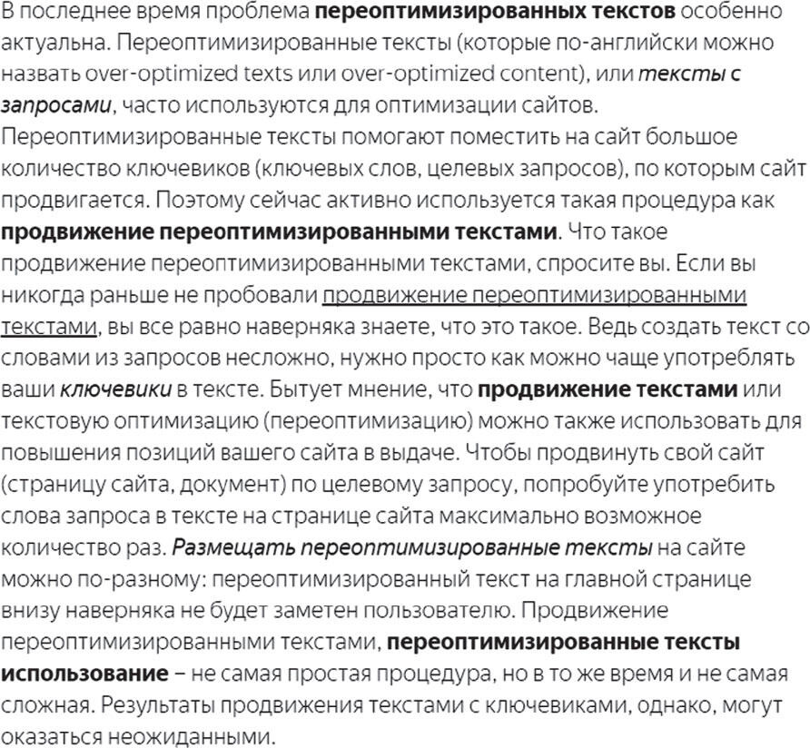 Вот так выглядит текст реального сайта, который недавно попал под фильтр «Баден-Баден»: