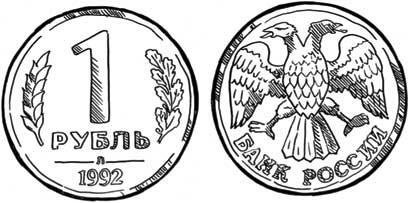 Пятачки у нас тоже белые, десятикопеечники желтые, а вот рубль снова белый.