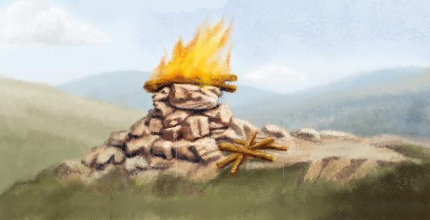 На вершине горы Авраам соорудил жертвенник из камней, положил на него дрова, а сверху своего связанного сына. Но когда Авраам занёс над Исааком руку с ножом, Ангел