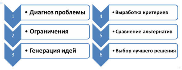 Принятие решений одна из важнейших функций управления. Алгоритм принятия решений обычно представляют состоящим из следующих подпроцессов.
