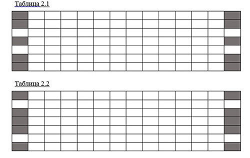 В нижней таблице (таб. 2.2) разность между любыми соседними по вертикали клетками в строках 3-4, 4-5 будет равна 12; в парах строк 1-2 и 6-7 соответствующая разность будет равна 13.