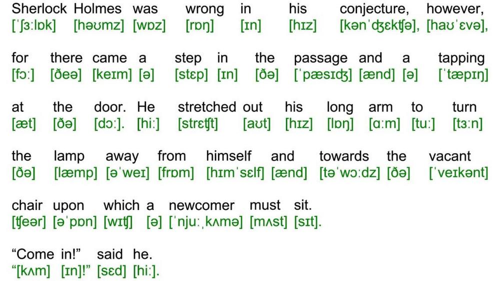 Sherlock Holmes was wrong in his conjecture, however, for there came a step in the passage and a tapping at the door. He stretched out his long arm to turn the lamp away from himself and towards the vacant chair upon which a newcomer must sit.