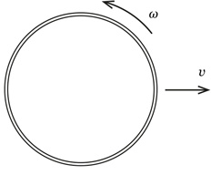 ЗадачаРассмотрим слегка упрощенную задачу. Пусть вместо шайбы у нас будет однородное узкое и плоское кольцо. Его запускают скользить по горизонтальной поверхности, придав некоторую начальную скорость и некоторое вращение (рис. 1). Между кольцом и поверхностью действует обычное сухое трение: сила трения пропорциональна прижимающей силе, не зависит от модуля скорости проскальзывания и направлена в противоположную от скорости сторону.