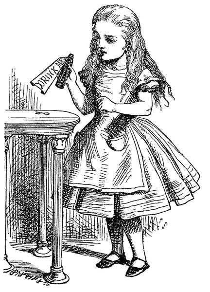Звісно, «ВИПИЙ МЕНЕ» гарна пропозиція, та мудра маленька Аліса зовсім не збиралася мерщій САМЕ ТАК і вчинити.