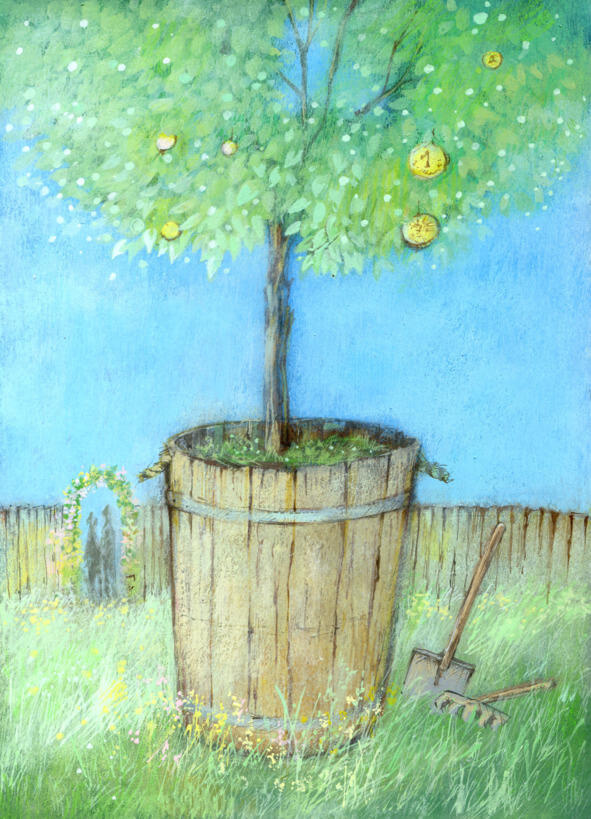 Жили-были два брата. Старший и младший. И был у них сад с множеством плодовых деревьев: яблонь, вишен, груш. Но одно дерево было необычное называлось оно денежное дерево. Ох и трудно было за ним ухаживать! Чтобы появились плоды, целых двадцать лет поливали, окучивали, подкармливали братья это дерево. И вот наконец появились на дереве золотые монетки. Как обрадовались трудяги: «Теперь нам не надо будет так много работать! Мы построим новый дом и новый забор для нашего сада! А еще» И у них даже остановилось на миг дыхание от фантазий, что можно еще! Неожиданно старший брат говорит: