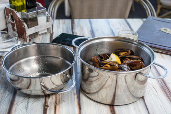 Кстати, никаких специальных приборов здесь к мидиям не подают. Ограничиваются обычной вилкой и ножом. Поэтому многие едят мидии просто руками.