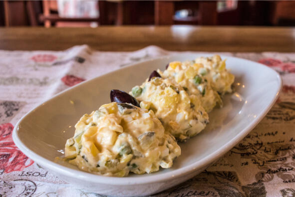 Старый добрый салат «Оливье», он же салат «Столичный», в Болгарии называют иначе. Русский салат, а по-болгарски руска салата.
