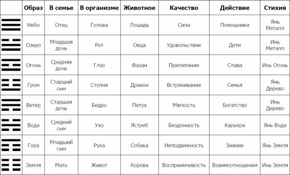 Все 8 триграмм из «Книги Перемен» показаны в табл. 1.