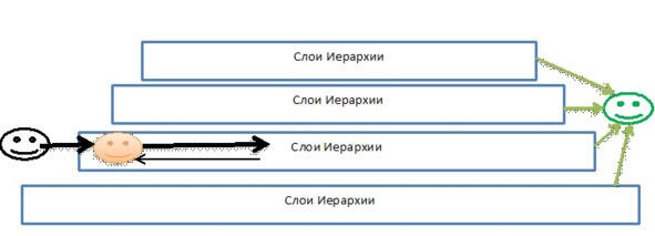 С точки зрения энергетики все просто Слои Иерархии притягивают к себе Силу большинства людей, поглощают её, но частично возвращают членам данного слоя. Это дает «ощущение равенства» и заставляет людей стремиться к нему. Конечно, многим хочется стать выше, но здесь всегда возникает опасность быть «изгнанным» «равным» людям не нравятся успехи других. В следующий слой сразу попасть сложно здесь нужно следовать правилам Иерархии, которые, может быть, и выведут нас туда. А попытки пробиться наверх самостоятельно обычно не кончаются ничем, кроме «изгнания» наверх нас не пускают, а в прежнюю «компанию» не принимают. Но человек стремится туда вернуться поэтому он излучает ещё больше Силы, ничего не получая взамен. Становится своего рода «донором», вернее «пищей» для Иерархии. Понятно, что такой вариант пугает многих.