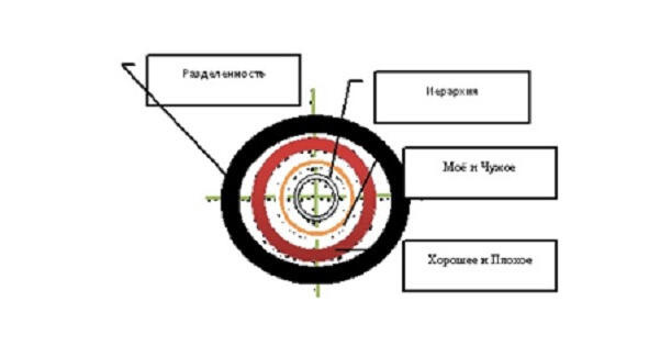 Начнем с кольца Иерархии. В предыдущей книге и во многих других мы говорили, что Иерархия возникает тогда, когда появляются отношения «Выше» и «Ниже». Это так, но в основе Иерархии лежат отношения Равенства. Казалось бы парадокс если все равны, Иерархия должна исчезнуть. Дело в том, что человеческое «равенство» относительно мы не стремимся стать «равными» всем людям, а лишь тем, кто находиться с нами на определенной ступени Иерархии. Конечно, многим хочется представлять себя высшими поэтому им нравится критиковать власти, наблюдать за «посадками олигархов» и так далее. Но внутри они чувствуют, что это «не всерьез» на самом деле они могут чувствовать себя «равными» определенной группе людей. Тем, кто живет в похожих квартирах, ездит на похожих машинах (или на метро) имеет примерно столько же денег и мыслит похожим образом. Основания для отношений «равенства» могут меняться например, для нас главное в том, что «мыслим похожим образом» или мыслим в одну сторону. Но в других ситуациях могут быть использованы и другие основания если я построил хороший дом и мой сосед построил тоже хороший дом, мы чувствуем принадлежность к одной группе то есть между нами возникают отношения «равенства». Они возникают и в том, случае, когда мы живем почти в одиночестве все равно сравниваем себя с людьми, которых мы увидели, с героями книг, фильмов и так далее. Понятно, что и на одном уровне происходит какая-то борьба многие стремятся хоть на время стать «выше» своего приятеля. Но это тихая борьба воевать всерьез нам мешает страх быть изгнанным из Иерархии. И у этого Страха есть своя основа.