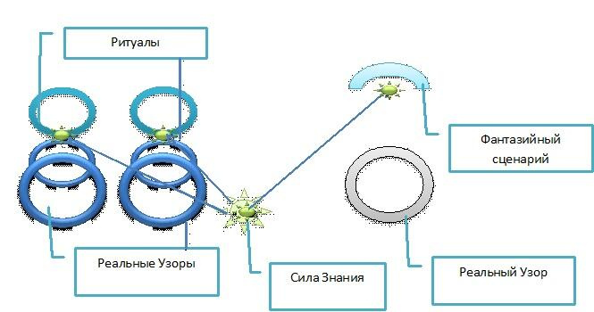 Это то, что на виду на самом деле ритуалы пронизывают всю нашу жизнь. Помните случаи, когда мы не можем найти нужную вещь, когда забываем сделать важный звонок или просто спотыкаемся на ровном месте все это действие ритуалов. Мы идем, следуя привычному сценарию и, если вдруг на дороге появляется кочка, нередко мы не можем её обойти потому, что Узор и Сценарий накрепко скреплены частичкой Силы Знания. То же самое происходит, когда мы «привычно» ругаемся с близкими, хотя легко могли бы разглядеть точку, в которой можно было бы погасить конфликт. Это иллюзорное Знание, которое позволяет нам видеть иллюзорные Узоры, в которых завтрашний день должен быть точной копией вчерашнего дня. И оно отнимает у нас возможность видеть то, что произойдет на самом деле. Предчувствия знакомы каждому, но обычно мы просто «отмахиваемся» от них и следуем привычному маршруту. Потому, что наша Сила Знания воплощена именно в иллюзорных Узорах и Сценариях. Создающих ткань Иерархии, основывающейся на Равенстве. Именно стремление к Равенству вовлекает нас в иллюзорные Узоры и Сценарии. Если, например, кто-то намного богаче нас и нас это цепляет, мы легко можем составить сценарий, по которому мы становимся богаче его. И это как бы выравнивает ситуацию. Так и во всех других случаях.