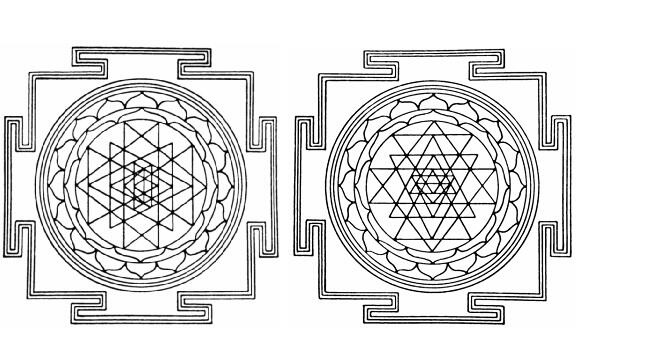Как мы видим и эти возможности довольно велики. Но их полное обретение не ограничивается описанным на самом деле возможности здесь намного шире. Освобождаясь от Иерархии, мы попадаем в реальный мир в основание больших треугольников Шри-Янтры. Поскольку Шри-Янтра может быть в двух положениях, вершины этих треугольников попадают в Вечность, в Бесконечность, в Порядок или в Хаос.