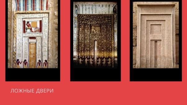 В ней было два уровня: наземный и подземный. Причем мумия хранилась внизу, а статуи умершего наверху. В эпоху Древнего Египта в наземной части делали ложную дверь это портал, через который могли войти душа или бог.