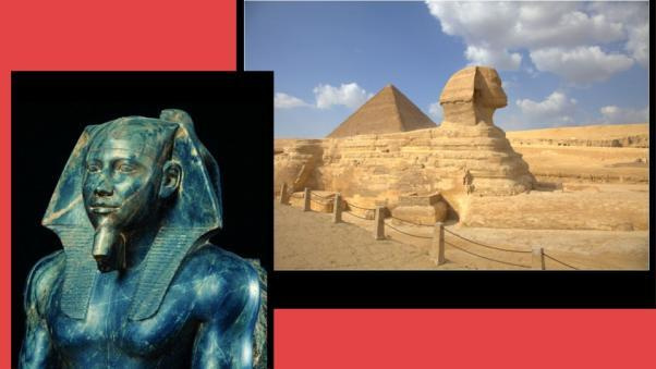 Человеческая голова была портретом знатного человека. Самый большой из египетских сфинксов находится рядом с тремя пирамидами в Гизе и, предположительно, является портретом фараона Хефрена. Он высечен из целой скалы, его длина более 73 м. Это древнейшая из сохранившихся монументальных скульптур.