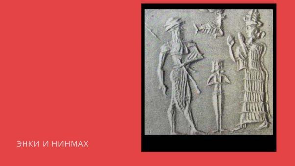 В другом мифе Энки и Нинмах идея создания человека принадлежит матери Энки Намму, на что он ей отвечает: Мать моя, творенье, что ты назвала, уже существует.