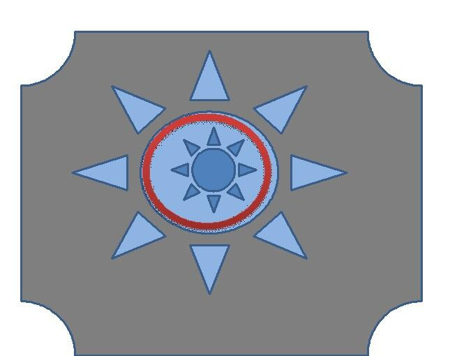 Звездочка в центре это наша внутренняя тень, обуславливающая целостность нашей пространственной формы. Красное кольцо физическое тело. Внешняя звездочка наше Тело Тени, наше отражение в окружающем пространстве прямоугольник серого цвета. В котором отражаемся не только мы все материальные объекты обладают Телом Тени, то есть они занимают в пространстве места больше, чем их видимые размеры. Эту Тень мы и ощущаем, когда сканируем, например, ладонью руки поверхность стола или тело другого человека. Или когда создаем что-то в окружающем нас пространстве. Поэтому внутренняя Тень устойчивей внешней, но тем не менее связаны. Их разделяет только наше физическое тело в его привычной нам форме. А это разделение не абсолютно процессы, происходящие внутри, всегда связаны с процессами, происходящими снаружи. Именно это и делает нашу расщепленность устойчивой.