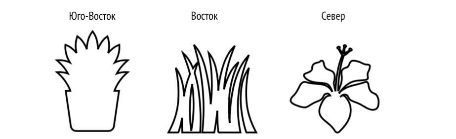 Юг. Юго-Запад. Северо-Восток. (Форма деревьев: Треугольная). Символизирует элемент Огня.
