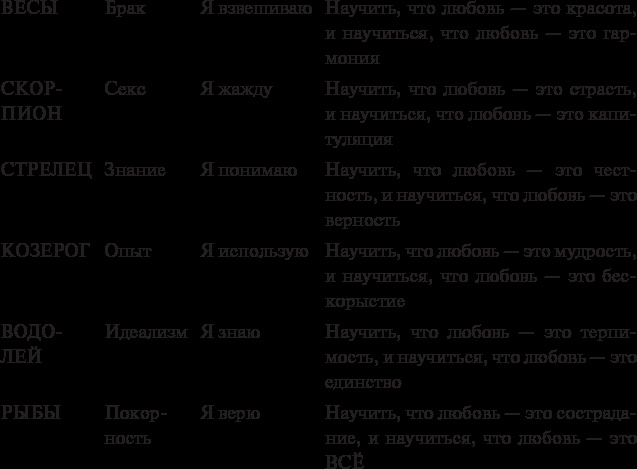 Почему продолжительная и взаимная любовь такая редкость? Чтобы обрести полное и устойчивое единение со своей половиной родственной душой, человек должен выучить уроки всех 12 знаков. Только полностью осознав мудрость двенадцати таинств любви, он может достичь окончательной идеальной гармонии между своими сущностями: ментальной, физической, эмоциональной и духовной.