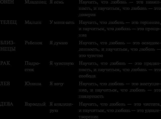 Все мы путешествуем по кармическому астрологическому колесу через перерождения под разными солнечными знаками, то стремительно развиваясь, то замедляясь, неоднократно возвращаясь к опыту некоторых знаков, чтобы заново пройти старые уроки. Мы эволюционируем, каждый со своей скоростью. Наше Сверхсознание побуждает нас постепенно совершенствовать положительные и очищать нашу суть от отрицательных качеств всех 12 знаков. И со временем каждый обретает совершенную сущность, достойную соединиться со своей второй половиной родственной душой. В нашей жажде любви и родственной души таится скрытое метафизическое знание. Секрет самой жизни. Мистическая истина.