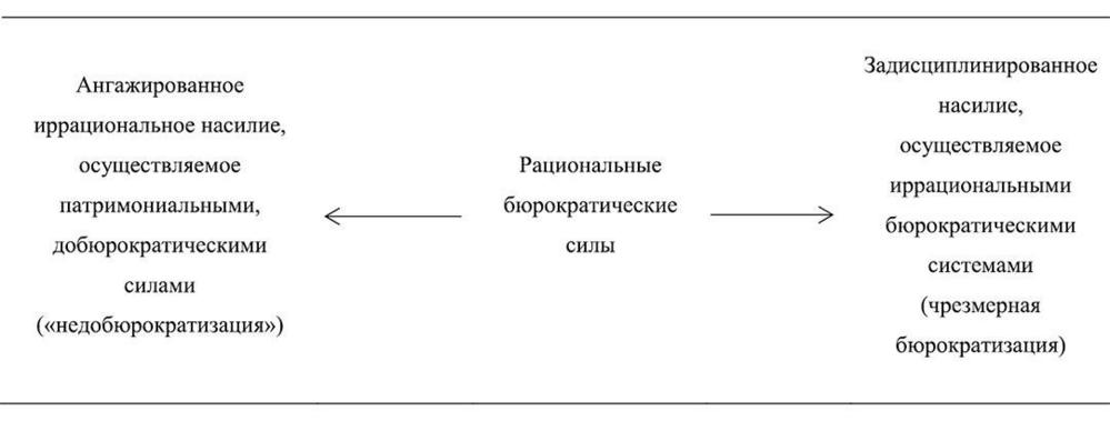 Рис. 1.1 Континуум бюрократической организации и насилия