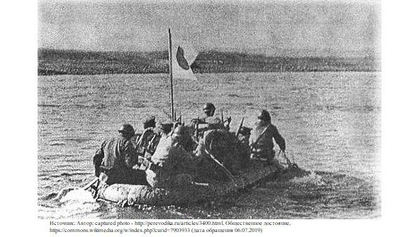 Японская пехота переправляется через р. Халхин-Гол, 1939 г.