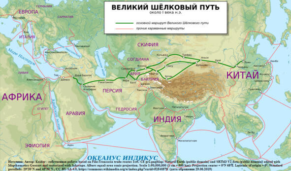 Великий шёлковый путь и другие караванные маршруты Евразии в I веке н.э.