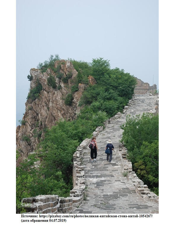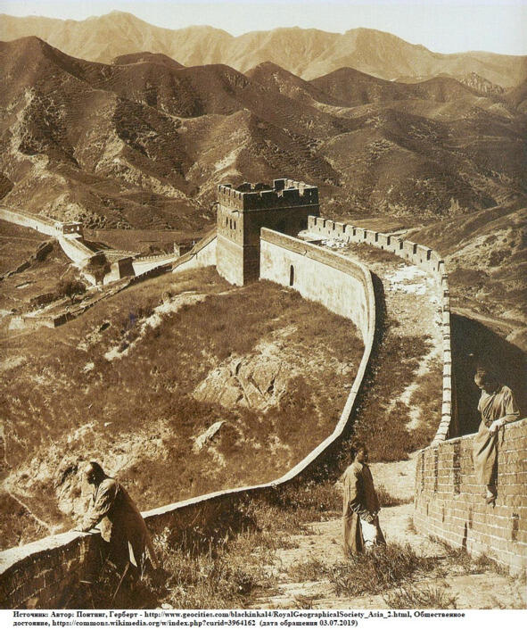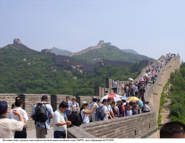 И на первые государства китайцев нападали их соседи, которые тоже хотели больше земель с полями и пастбищами для своего скота, лесов со множеством дичи, рек, полных рыбы, деревень с трудолюбивыми жителями и укреплённых городов. Особенно опасны были северяне, потому-то правители Древнего Китая и приказали своим подданным возводить крупное оборонительное сооружение именно по хребтам северных гор, которое стало практически неприступным для нападавших племён. Оно сохранилось до сих пор это Великая китайская стена, или просто Китайская стена. По-китайски Длинная стена: она протянулась на восемь тысяч восемьсот пятьдесят один километр восемьсот метров!!! Это огро-омное расстояние! Великая стена проходит через весь Северный Китай, и считается, что именно там древние китайцы защищали границы своей древней страны от кочевых племён захватчиков. Очевидно, что зависть, жадность и жажда быстрой наживы заставляла этих людей не строить города, пасти скот и пахать землю, а устраивать набеги на более зажиточных соседей и силой отбирать у них ценные вещи и результаты их трудов. Вот и стена эта огромный труд многих поколений тысяч и тысяч людей. Она состоит из кирпичной кладки, но в некоторых местах очень помогает и сам горный массив. На некоторых участках сохранились рвы, заполненные водой. Начинали стройку отдельные китайские государства, а после их присоединения к государству династии Цинь император Цинь Шихуанди приказал соединить ряд оборонительных линий в одну стену. Видишь, какая она огромная! Больше нигде в мире нет такого укрепления! Однако вопреки распространённому мнению из космоса её не видно без специальных приборов.