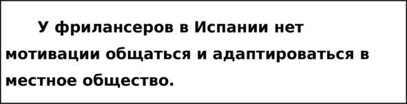Из этого следует острое ощущение одиночества. Даже если человек переехал с семьёй. Ведь партнёр активно взаимодействует с испанцами, находит друзей и быстро начинает говорить. Притом что фрилансер считается свободным в выборе времени для работы и места жительства, с другой стороны, он является заложником своей деятельности.