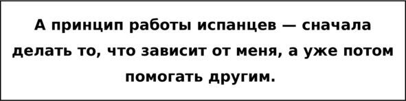 Этому у них стоит поучиться. Тогда в работе не будет эмоционального выгорания и не будет обид на коллег-испанцев.