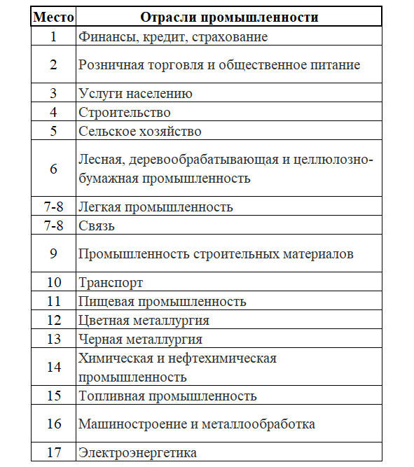 Таблица. Рейтинг «рейдпригодности» предприятий РФ по отраслям: