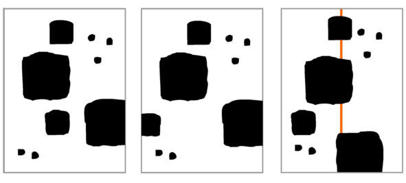 4.Четвертое условие комфортности сбалансированность выходов пятен в края композиции. Если в композиции все пятна находятся на каком-то расстоянии от краев, а одно пятно расположено вплотную к правому краю, то у нас создастся впечатление, что наш лист обрезан справа и является левой частью большего листа. То же произойдет, если одно пятно находится вплотную к левому краю композиция будет восприниматься как фрагмент большего изображения. Это создает дискомфорт. Если же пятна граничат и с левым и с правым краями, композиция будет восприниматься как нечто цельное или как центральный фрагмент, что вполне комфортно. По горизонтали выходы пятен в края композиции должны компенсироваться. А вот с выходами вверх и вниз все обстоит иначе они не нуждаются в компенсации. По вертикали композиция устойчива.