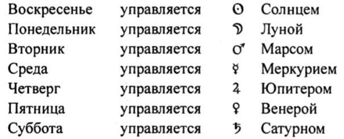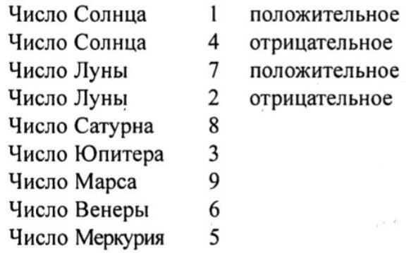 Читателю необходимо запомнить числовые значения планет, а также и дни недели, управляемые ими: