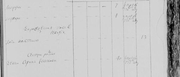 Сестра родная Арина Ивановна 40\умерла в 1772 году