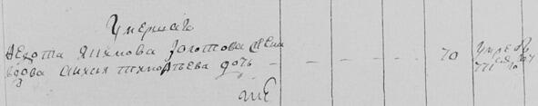 вдова Афимья Тихоновна 70\умерла в 1771 году